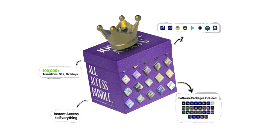 Get Over 70 GB Of Video Editing Assets, Including Transitions, Overlays, Fonts, LUTs, FX, Premade Templates, Which Are Compatible With Software Like Premiere Pro, After Effects, DaVinci, Filmora Etc. On Top Of That, Get A Full-Fledged Video Editing Course To Get You Started.